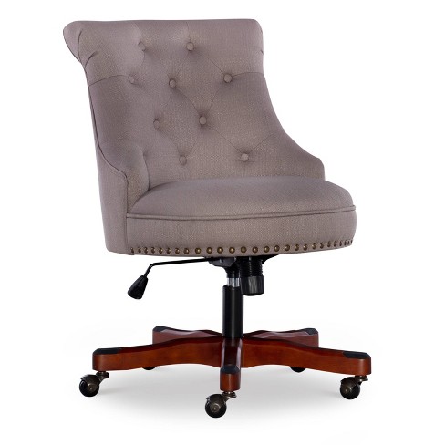 Features add style and function to your office with the linon sinclair office chair. Antique bronze nailheads accent the chair. Features add style and function to your office with the linon sinclair office chair. The soft, plush frame features a button tufted back and is upholstered in a natural fabric. The chair is durable and is meant for full day use.